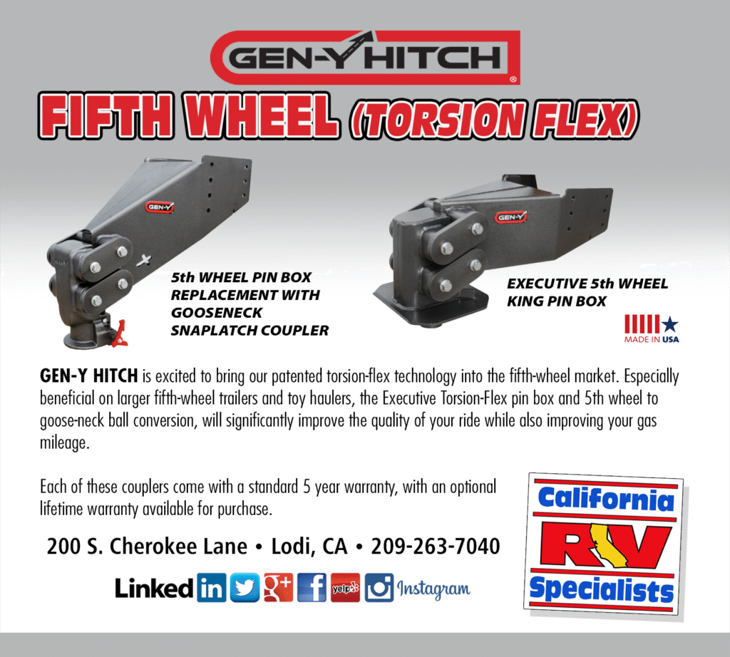 At California RV Specialists, we’re proud to offer professional installation of the Gen-Y EXECUTIVE 5th Wheel King Pin Box—one of the most advanced, best-riding pin box upgrades in today’s RV industry.
