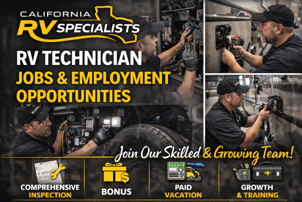 At California RV Specialists, we believe the best technicians are built through hands-on experience, mentorship, and a supportive work environment. If you’re serious about mastering the RV trade, there’s simply no better place to start or grow your career.