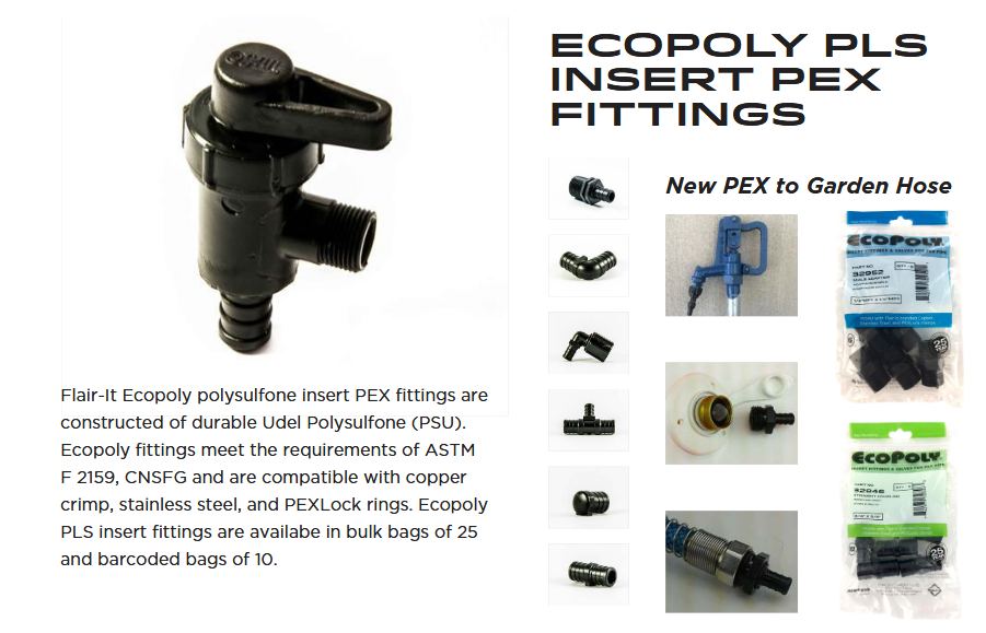 - EcoPoly PLS insert PEX fittings