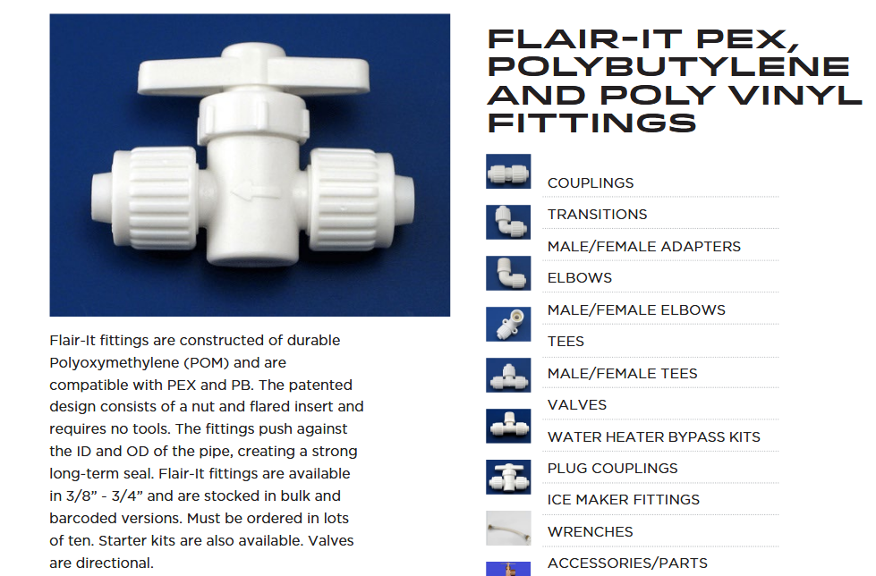 - FLAIR-IT Polybutylene fittings