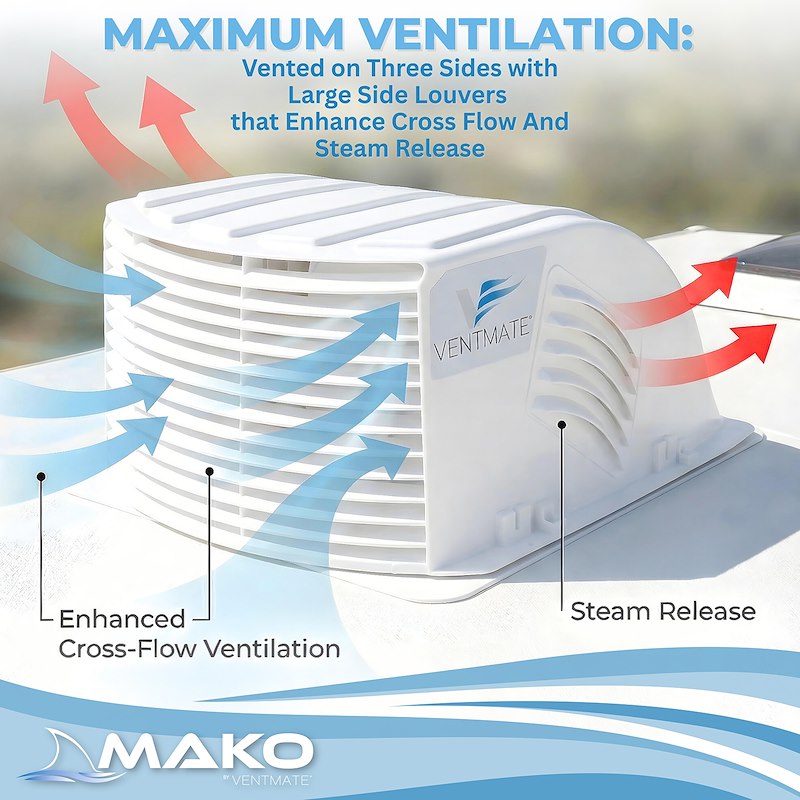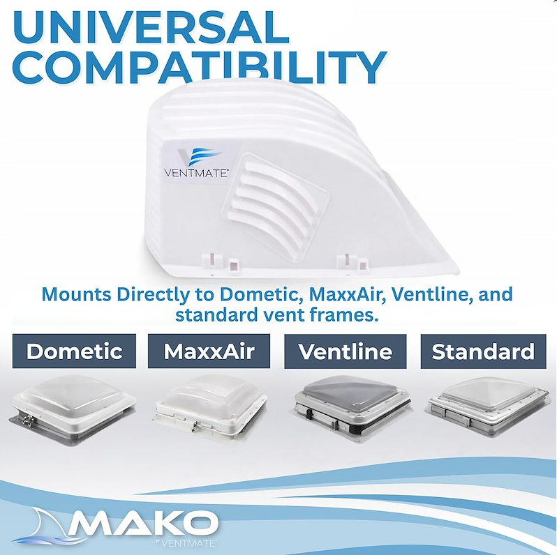Whether you’re looking to improve airflow, prevent rain intrusion, or replace a damaged vent cover, the Ventmate Mako offers a versatile and installer-friendly design suitable for a wide range of RVs and trailers.